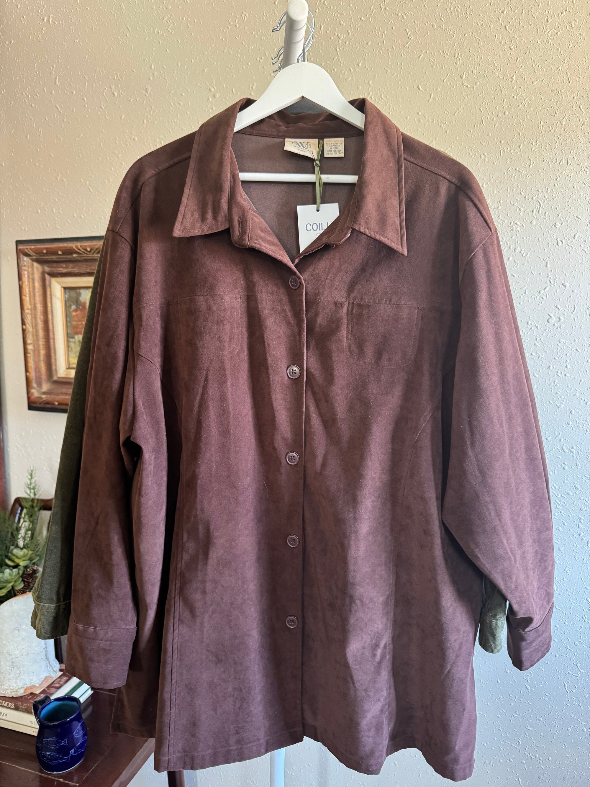 Vintage Brown Suede-like Shirt Jacket | Size 1X